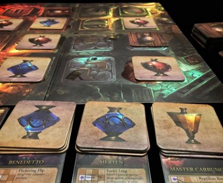 Whenever a player makes a match, they must place it on one of their apothecaries. This removes that apothecary's power for the rest of the game, so it's important for players to keep revealing potions, collecting gems and hiring new apothecaries... all while keeping their opponents at bay!
