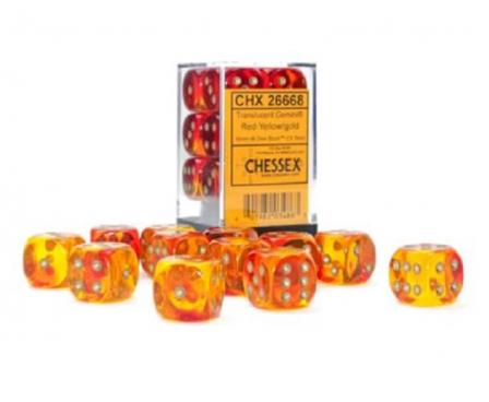 SHARED TO : 0 in stock 161000 Weight: 100 gAgesMax: 100 Ages : Players : - Game Length : CONTENT Chessex Gemini Translucent Red with Yellow/Gold 12 Dice Set - 6 Sided 16mm d6Inside has 12 dices DESCRIPTION Log in or register to post comments Comments
