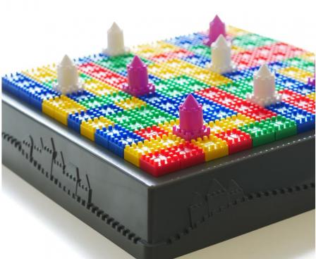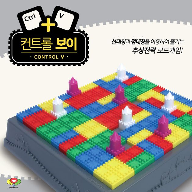 Control V is an abstract strategy game with castle-shaped blocks. By using symmetry, copy and paste your blocks to enlarge your territory. The player with the largest territory on the board wins the game.