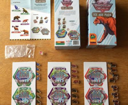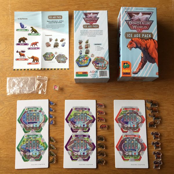 There's a chill in the air... And these creatures feel right at home! The Ice Age Pack adds even more variety to your park with additional components and gameplay. Place these mammal enclosures anywhere in your park (yes, anywhere - even next to dinosaurs) and roll a special Ice die when activating them. You will also score adjacency bonuses for these enclosures at the end of the game. However, you can only claim one bonus per creature you've built - so make sure to plan wisely!