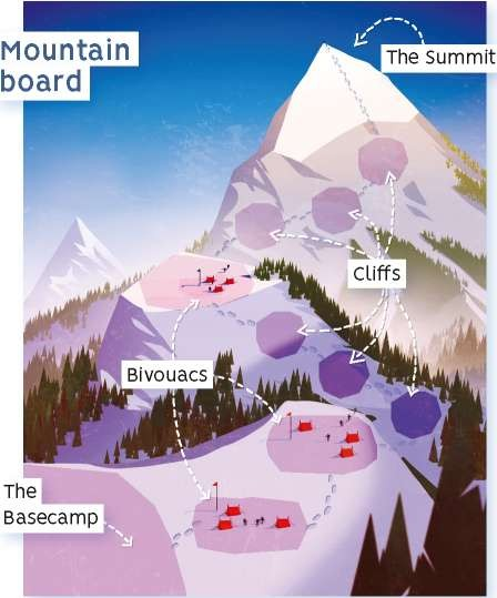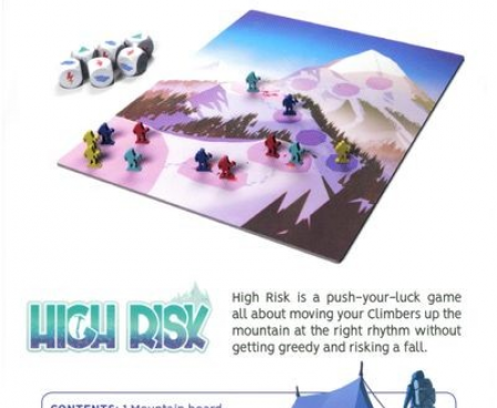 In the press-your-luck game High Risk, you want to move your climbers up the mountain at the right pace without getting greedy and risking a fall..