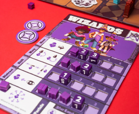 Mythic Mischief is a game of high-stakes hijinks in which 1 to 4 players vie for control of the S’ghoul Library. Groups of Mythics with contrasting powers work to manipulate the board and outmaneuver their opponents. Cunning capers and tactical traps will outwit your enemy, catching them right in the path of the bone-chilling Tomekeeper. The time is short and the stakes are high for proving yourself the best in class.