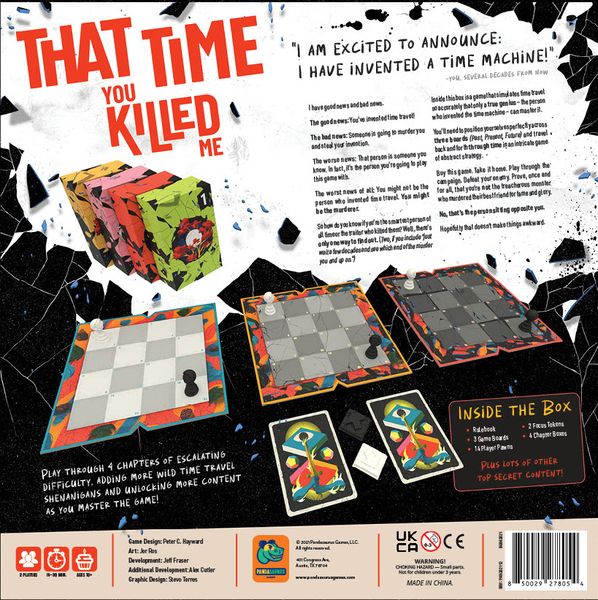 That Time You Killed Me is an abstract narrative game of time and murder that introduces new scenarios with unique rules and components as you play. As with any game about mucking about across time, you must play through this content in a strict, unalterable order.