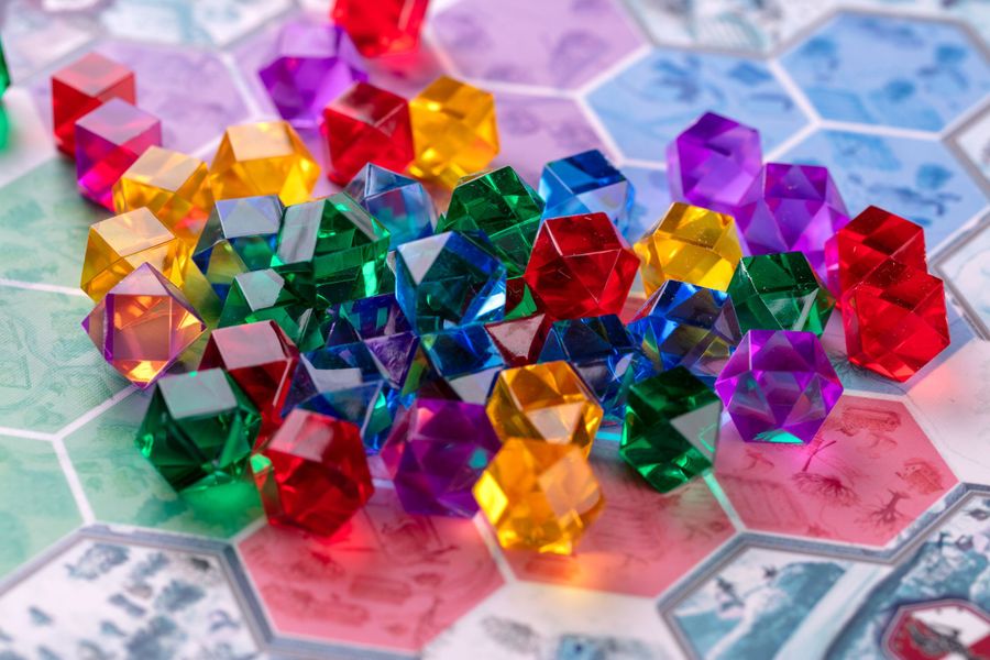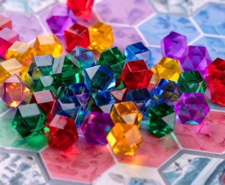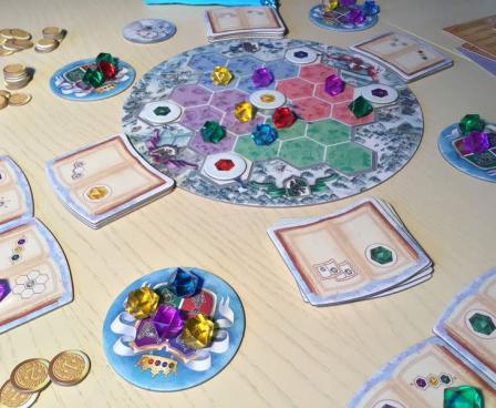 In the abstract family game Winter Queen, you take on the roles of Winter Queen's sorcerers, creating magical ornaments out of enchanted crystals. Each turn, you either place a new crystal onto the board or use already placed crystals to score victory points depending on the spell books you and your opponents have.