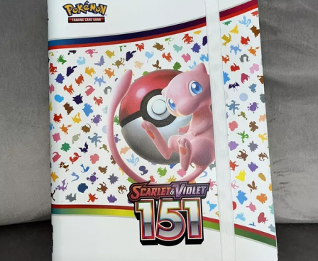 Pokémon Scarlet & Violet—151 9-pocket PRO-Binder with printed cover. Elastic strap holds the binder shut when not in use.