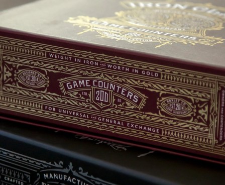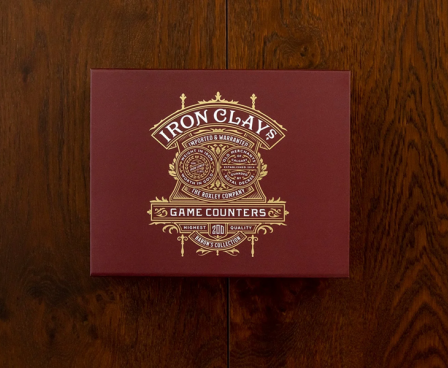 Iron Clays 200 are delivered in a sturdy, foil stamped, embossed magnetically sealed box. Within the box, the clays are stored in stackable plastic trays, allowing them to reside on your game table accessible to you and your opponents.