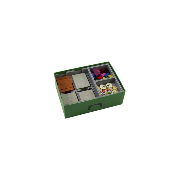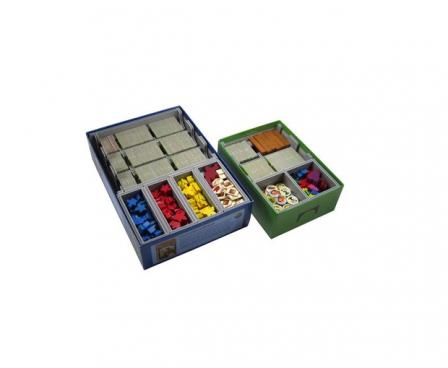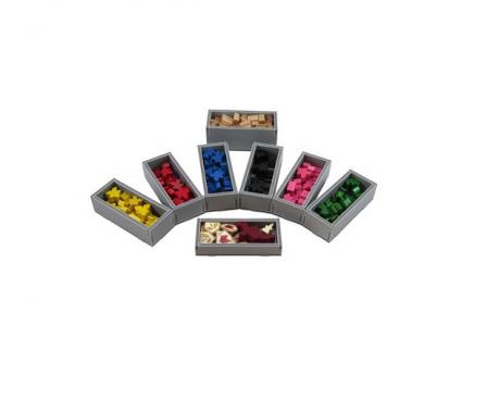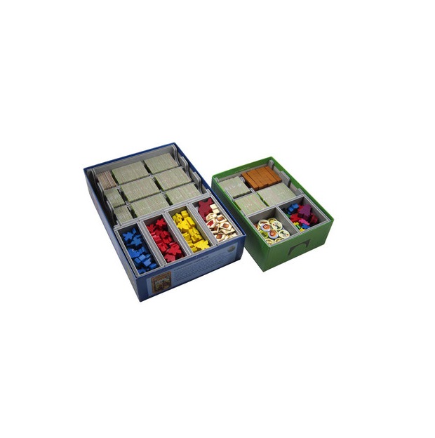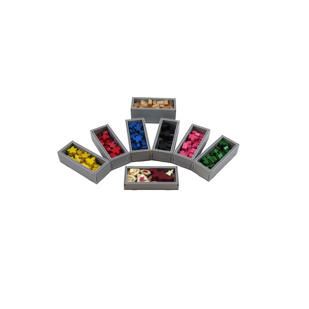 Insert compatible with Carcassonne® and the first five expansions to the game: Inns & Cathedrals®, Traders & Builders®, The Princess and the Dragon®, The Tower®, and The Abbey & Mayor®. The insert also includes three bonus trays for use in one of the expansion boxes to store the Count, King & Robber®, Bridges, Castles and Bazaars®, Hills & Sheep®, and Under the Big Top® expansions. More details on this below.