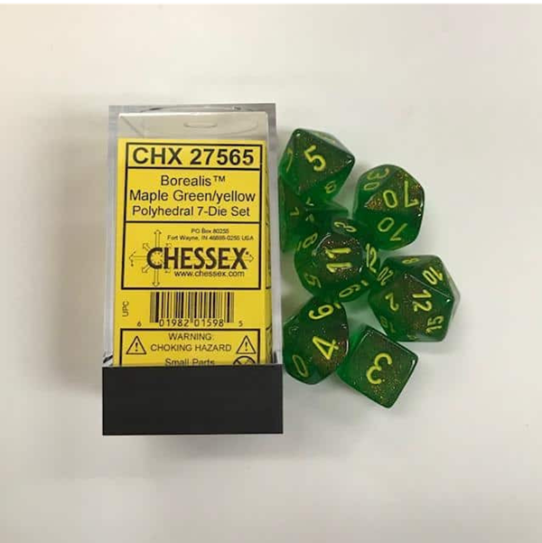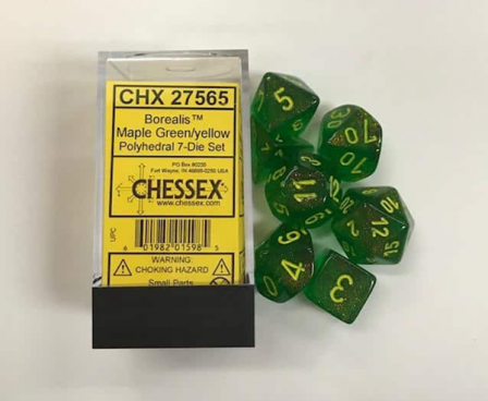 Chessex Borealis Polyhedral Maple Green/Yellow Set 7 Dice CHX 27565