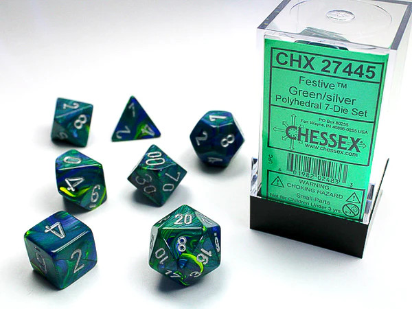 Contains 1xD4, 1xD6, 1xD8, 2xD10, 1xD12, 1xD20 in a box