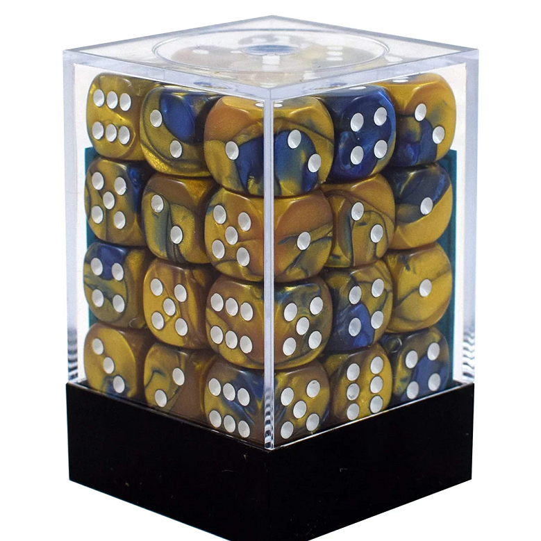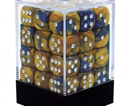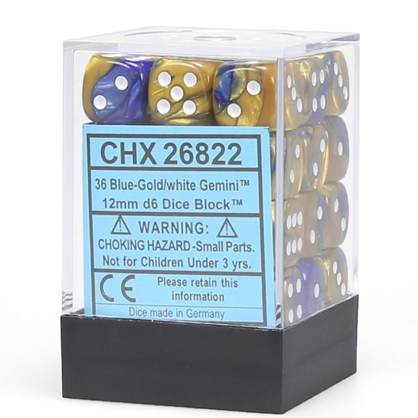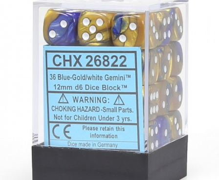 Chessex Gemini 12mm d6 36 Dice Block Blue-Gold/White CHX 26822
