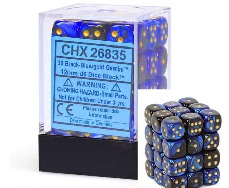 SHARED TO : 0 in stock 205000 Enter Quantity 12345678910 Add to WishlistWeight: 200 gAgesMax: 100 Ages : Players : - Game Length : CONTENT DESCRIPTION Chessex Gemini Black Blue/Gold Set : 12mm Six Sided Die (36) Block of Dice Log in or register to post comments Comments