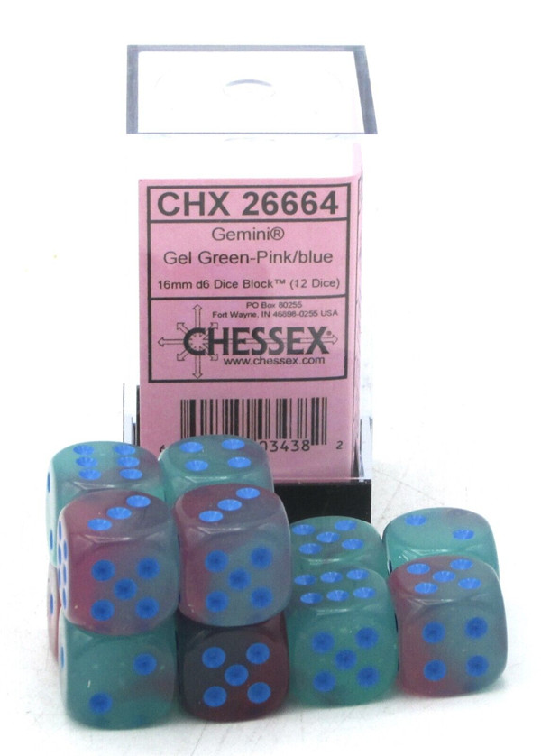 SHARED TO : 0 in stock 161000 Weight: 100 gAgesMax: 100 Ages : Players : - Game Length : CONTENT DESCRIPTION Gemini: 16Mm D6 Gel Green-Pink/Blue Luminary Dice Block (12 (US IMPORT) ACC NEWInside has 12 dices Log in or register to post comments Comments