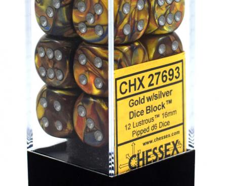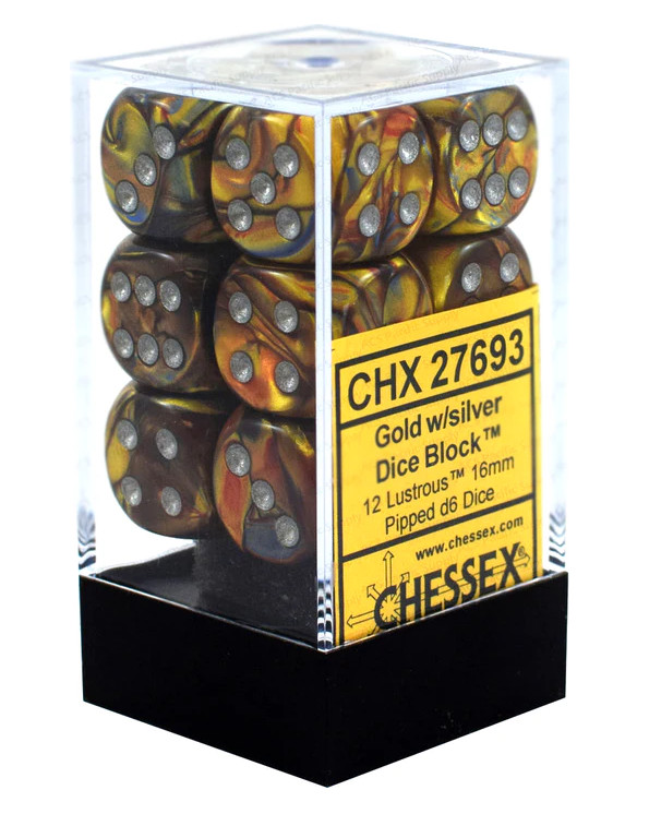 Chessex Lustrous Gold Silver 16MM d6 12 Dice ( CHX 2793 )