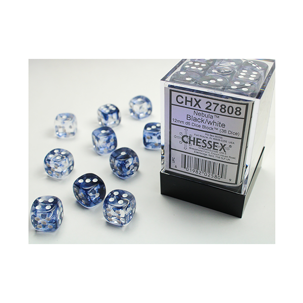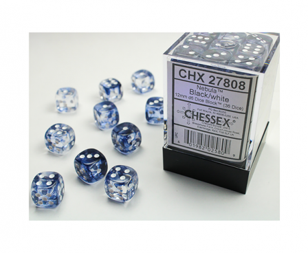 SHARED TO : 0 in stock 204000 Weight: 200 gAgesMax: 100 Ages : 11+ Players : - Game Length : CONTENT DESCRIPTION Chessex Nebula Black/White Set : 12mm Six Sided Die (36) Block of Dice Log in or register to post comments Comments