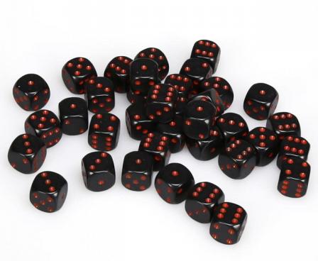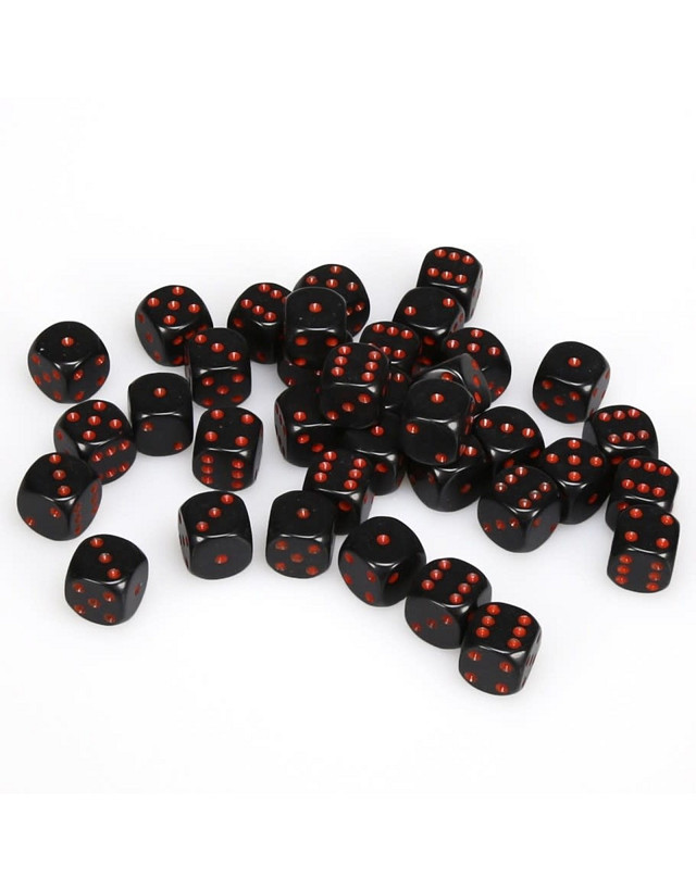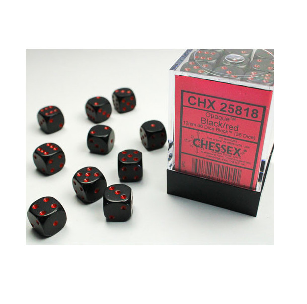 Opaque Black with Red - 12mm Six Sided Die (36) Block of Dice