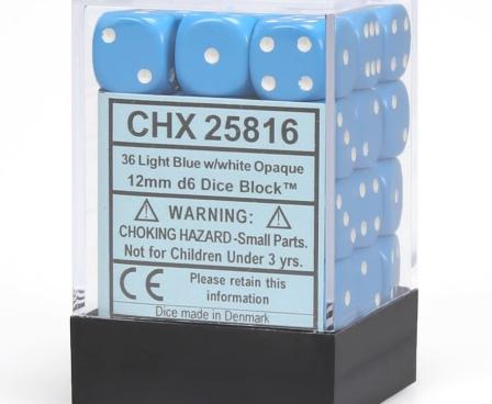 SHARED TO : 0 in stock 100000 Weight: 100 gAgesMax: 100 Ages : Players : - Game Length : CONTENT Dice Dadu DESCRIPTION Chessex Opaque Light Blue/White Set : 12mm Six Sided Die (36) Block of Dice Log in or register to post comments Comments