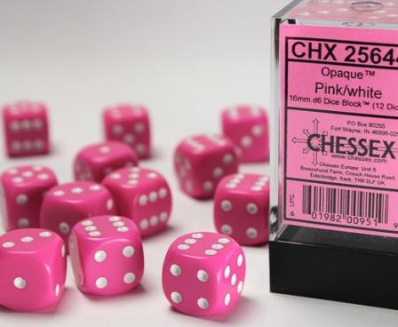 SHARED TO : 0 in stock 65000 Weight: 150 gAgesMax: 100 Ages : Players : - Game Length : CONTENT DESCRIPTION Twelve plastic 16mm Blue Opaque 6-sided dice.Chessex Opaque dice have a striking rich colour.These dice are Pink and have White pips. Log in or register to post comments Comments