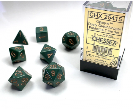 Chessex Opaque Polyhedral Dusty Green/Copper 7 Dice Set