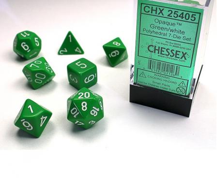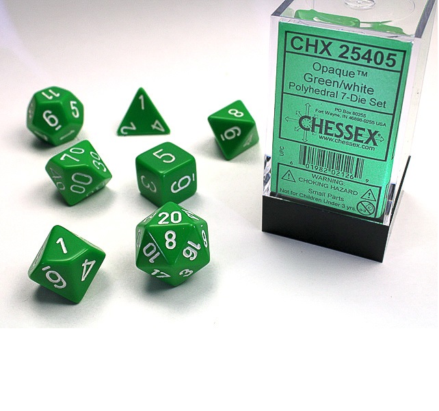 Chessex Opaque Polyhedral Green/White 7 Dice Set