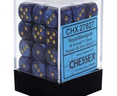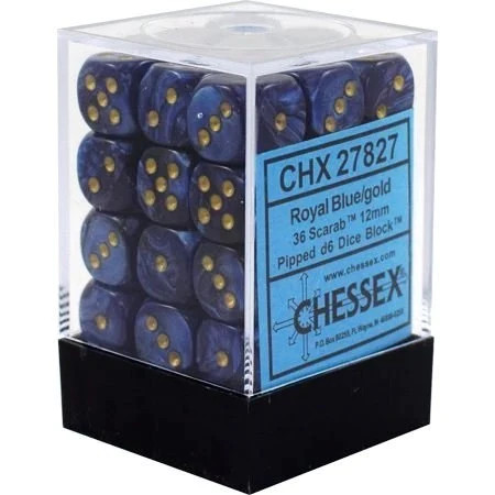 Chessex Scarab 12mm d6 36 Dice Royal Blue/Gold Block (CHX 27827)