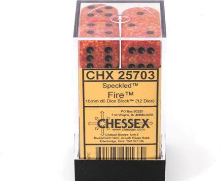 This set of 12 Speckled dice look, feel, and roll well and will be a great addition to any game or collection. The top number is used on a roll. The edges allow for easy shape recognition and the numbers are about as large as possible on each face. This set includes 12 D6 (six-sided) dice. Dice come in retail clamshell packaging. Each die measures approximately 16mm tall (measuring height while die is sitting flat).