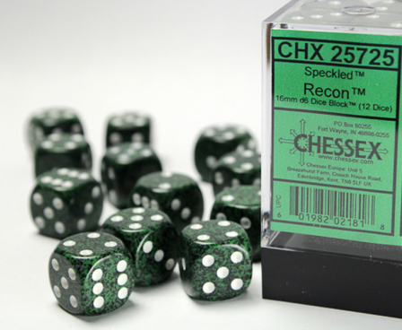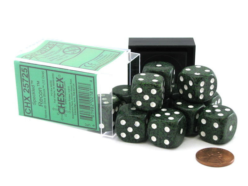 SHARED TO : 0 in stock 88000 Weight: 100 gAgesMax: 100 Ages : 10+ Players : 1- Game Length : CONTENT DESCRIPTION Set of 12 DiceStore your dice in the included clear plastic display caseEach die measures ~16mm tall, which is often considered standard sized dice Log in or register to post comments Comments