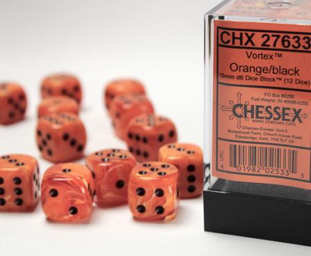 DND Dice Set-Chessex D&D Dice-16mm Vortex Orange and Black Plastic Polyhedral Dice Set-Dungeons and Dragons Dice Includes 12 Dice - D6, Various (CHX27633)