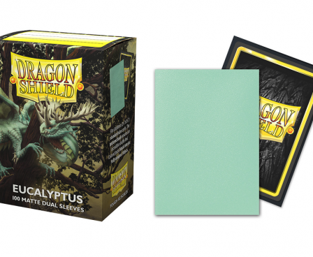 Dragon Shield Dual Matte sleeves. Clear front and a textured matte back. Fully opaque sleeves with a black interior, an elegant backdrop for black bordered cards.