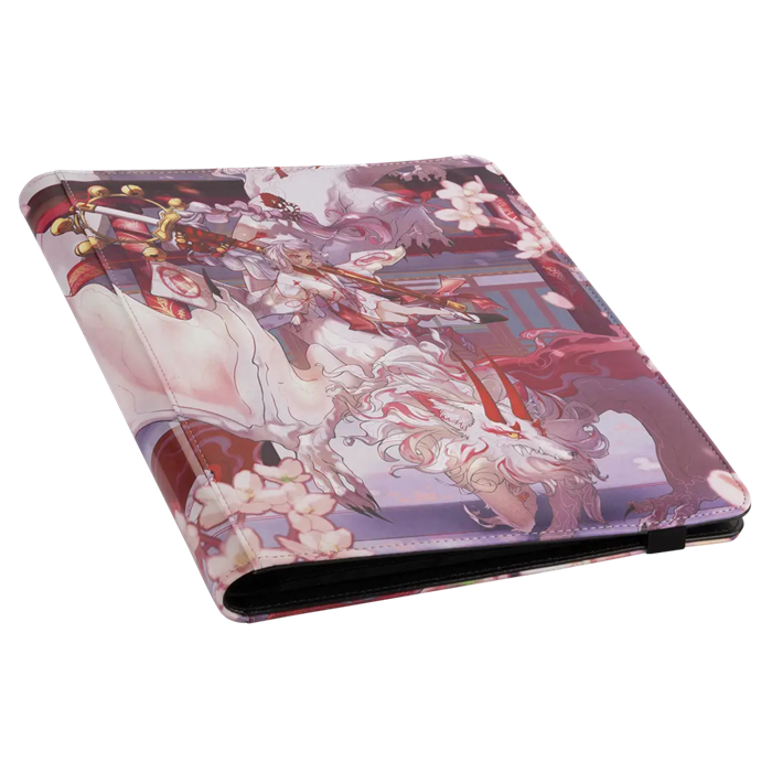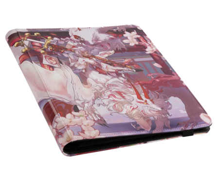 The Card Codex portfolio, adorned with stunning artwork by the renowned Japanese artist Ryo Kamei, features a reinforced cover that ensures your cards remain secure and pristine. The artwork is rendered in delicate pink and light hues, capturing the ethereal beauty of Yuki and Kuzuha amidst their relentless hunt.