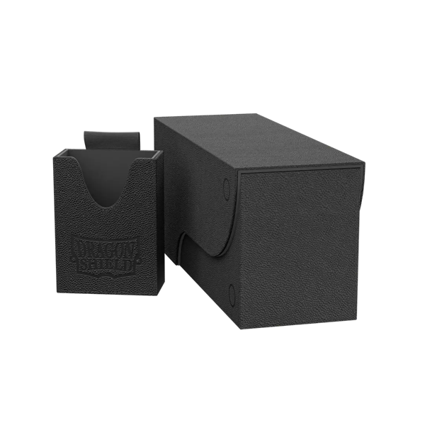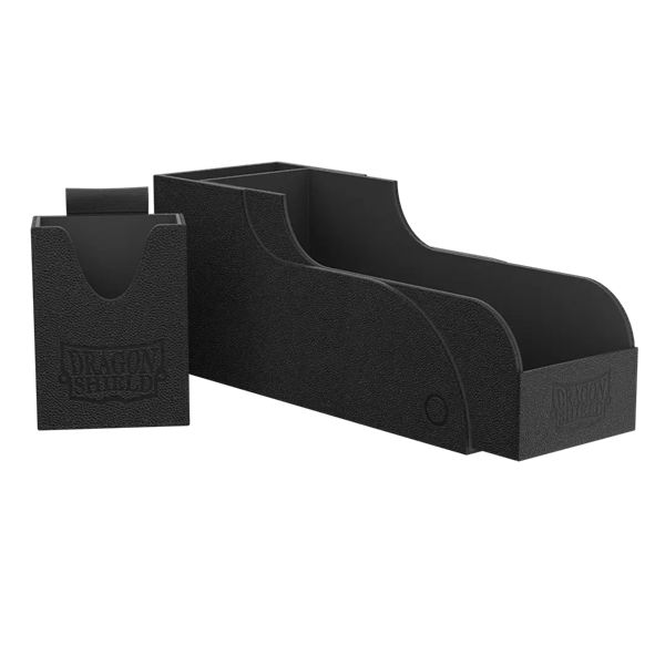 The Nest+ 300 Box has a clever design that can be rearranged in various ways, saving valuable board space during play. This wonder can hold up to 325+ single-sleeved cards or 260+ double-sleeved cards, or 258 cards double-sleeved with Perfect Fit Sealable. You can even fit Dragon Shield Strongboxes, Cube Shells, Deck Shells, Double Shells, and Standard Size 100 ct. sleeve boxes inside.