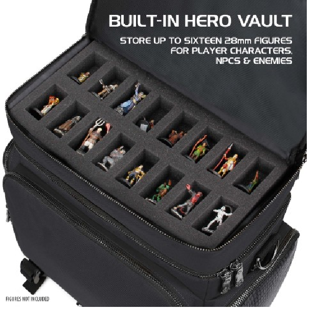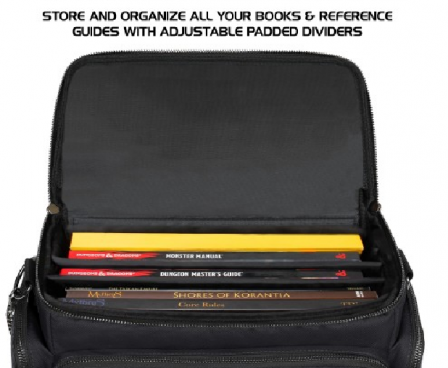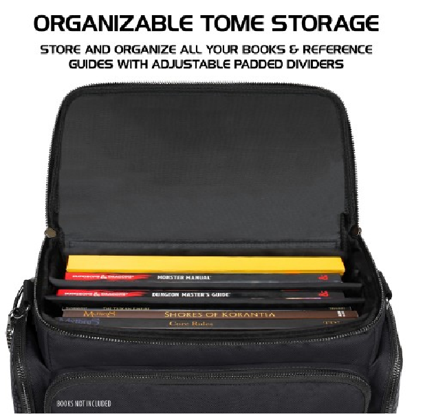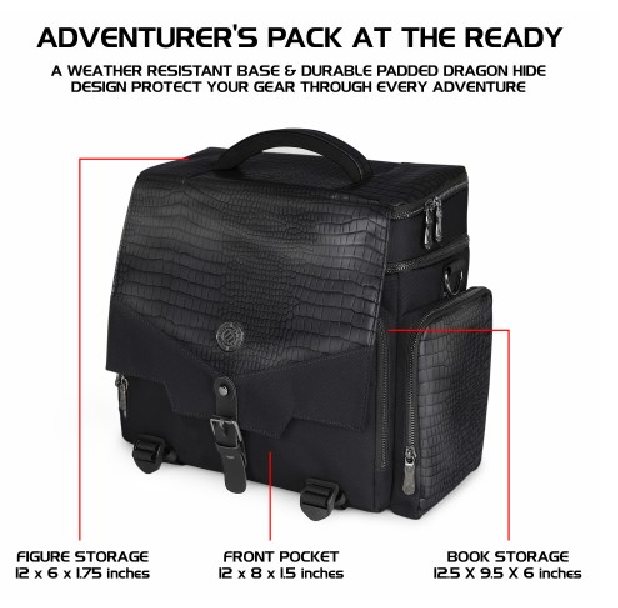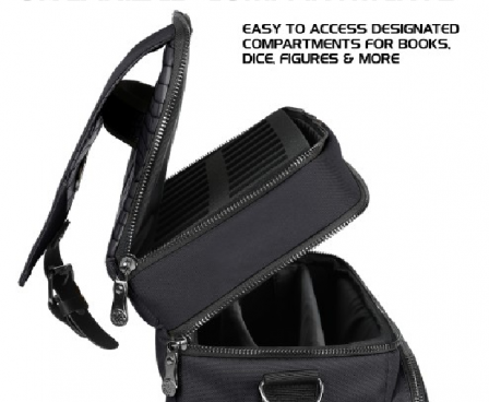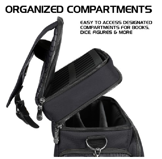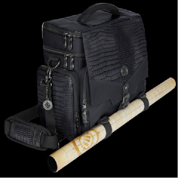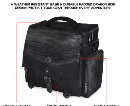 "ENHANCE Collectors Edition Tabletop Adventurer's Travel Bag. Designed specifically to help Dungeons Masters or players of any tabletop RPG bring everything they need to their next session. Now upgraded with the power of Dragonhide as its exterior. Forged from the spoils of war using techniques from an age long forgotten. The messenger style design features a rugged carrying handle and adjustable shoulder straps. The exterior is made from a rugged and durable polyester fabric reinforced with interior padding to keep the contents protected as well as adding structural support to bag. The bag features a variety of compartments for storage and accommodates books from Dungeons and Dragons, Shadowrun, Mythras, The Burning Wheel, Mouse Guard, Pathfinder and many more publishers/games. The top compartment features a miniature figure storage space with an included foam organizer capable of holding 16 28mm miniature figures. ENHANCE your tabletop experience with the Adventurer’s Travel Bag.