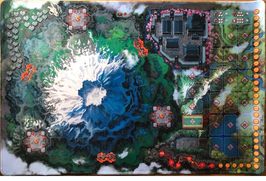 Double sided playmat (cooperative and competitive side) to replace the game board of Fuji Koro Deluxe, or to replace the frame and Imperial board of Fuji Koro Retail.
