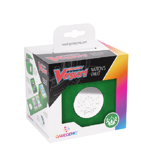 Coming in 6 different colors, all six different nations are represented with their matching color and the innovative metal-plated lock with the nation’s symbol at the front. The Cardfight!! Vanguard Nation’s Vault is perfectly sized to hold a full deck of up to 50 cards, even doublesleeved. In addition, there are 2 protected pockets to present and safely store up to 4 special sleeved cards.