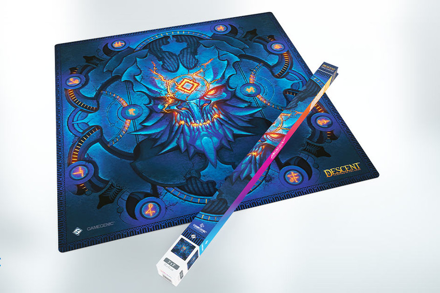 The extraordinary Descent: Legends of the Dark™ Prime Game Mat is a premium, softly cushioned Game Mat which matches the original cover of the game. The extended size of 3×3 feet (91x91cm) provides more space for all the miniatures, 3D pieces, tokens, cards, and accessories, which are essential to the new, voluminous game. The mat is covered with ultrafine surface and its anti-slip back side keeps it perfectly in place during the game. Natural rubber of 2 mm thickness makes sure that the Game Mat rests flat on the table. With the licensed Descent: Legends of the Dark™ Prime Game Mat you will not only intensify your visual adventure but also save your game accessories from scratches or damage.