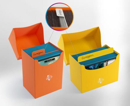 Innovation: Foldable register tabs: Probably the first card divider on the market that truly divides! The tab allows an increased height that sticks out from the card pile and provides a much better visibility compared to usual dividers. The flexible fold-line makes sure that no cards are harmed while closing the box. The register tab will just fold to the side and unfold when the box is opened. Due to an additional folding line at the side this also works in sideloading boxes.