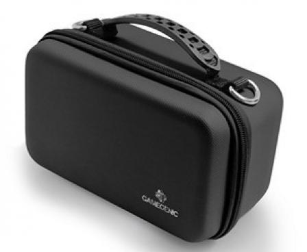 The Game Shell is a portable case, perfectly sized for a wide variety of usages. It fits up to 250 double-sleeved cards, tokens, dice or even complete small games. The outside material comes in durable and resistant nylon with a premium structure. It boasts a reinforced handle and two zippers, hidden and protected by the outer material. On the inside, the Game Shell provides an accessories compartment and 2 adjustable dividers. This enables a completely free setup, adjustable to your needs and preferences.