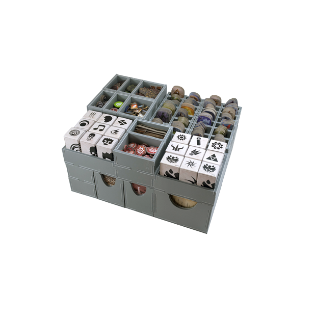 This insert is designed to be compatible with Gloomhaven®. The design provides both efficient storage and improved game play. Many of the trays can be utilised during the game, and they greatly aid set-up and clear-away times.