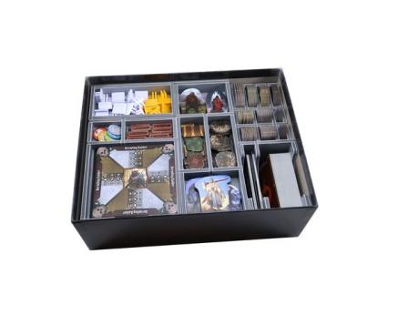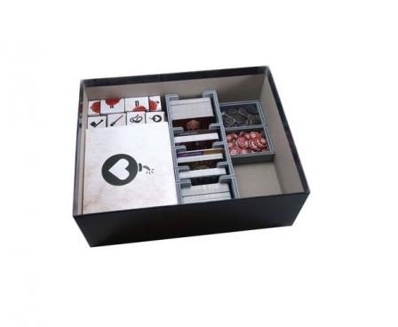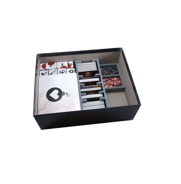 Insert compatible with Gloomhaven: Jaws of the Lion®. The design provides both efficient storage and improved game play. Many of the trays can be utilised during the game, and they greatly aid set-up and clear-away times. The insert is arranged in three layers.