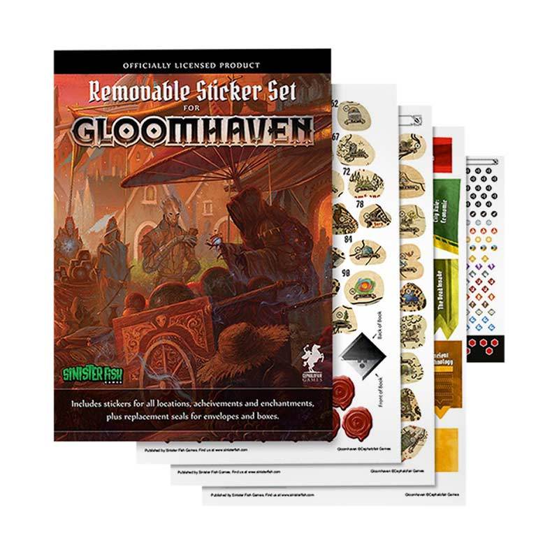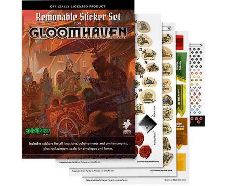 Removable vinyl stickers for all locations, achievements, and enhancements, plus replacement seals for envelopes and boxes.