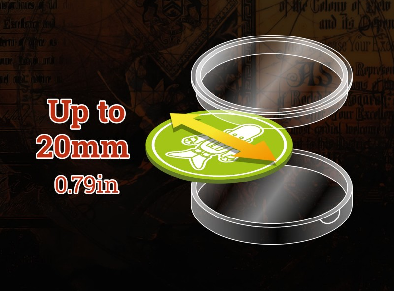 Allows tokens up to 3mm thick and 20mm in diameter.