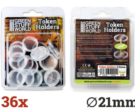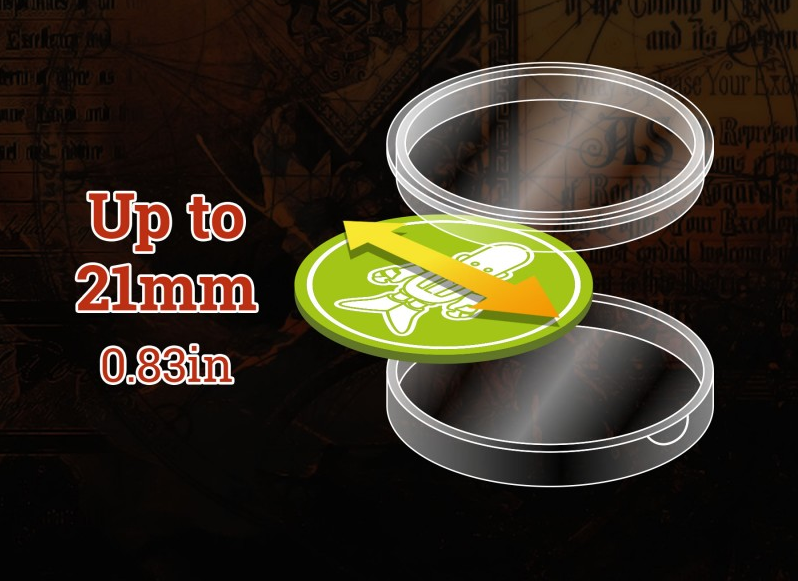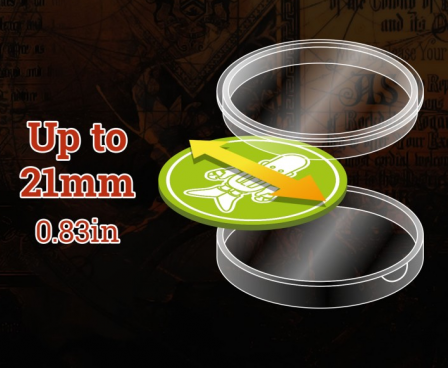 Selection of transparent capsules made of sturdy methacrylate plastic for command tokens with easy opening and closing, which will allow you to procet the tokens of your favorite boardgames and wargames and at the same time make them compatible with the tournament rules.