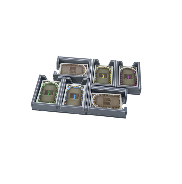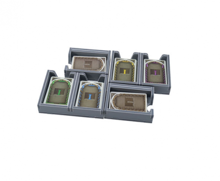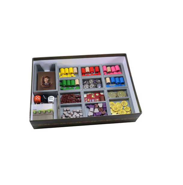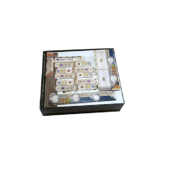 Insert compatible with Lorenzo il Magnifico®, and the Houses of Renaissance® expansion. The design provides both efficient storage and improved game play. Many of the trays can be utilised during the game, and they greatly aid set-up and clear-away times. The rules and boards act as a lid on top of the trays.