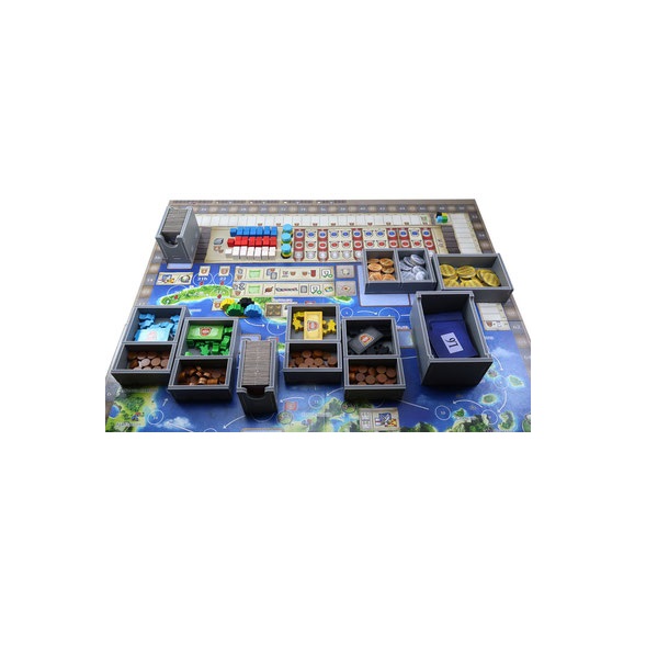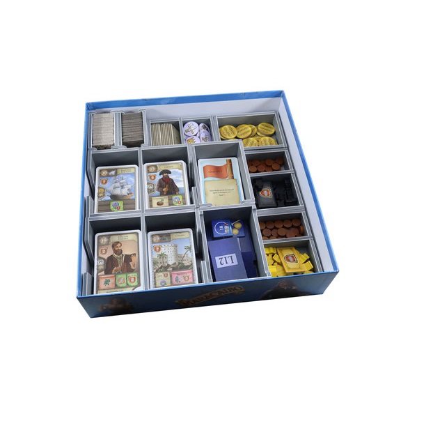 Insert compatible with Maracaibo®, and La Armada® expansion. The design provides both efficient storage and improved game play. Many of the trays can be utilised during the game, and they greatly aid set-up and clear-away times.