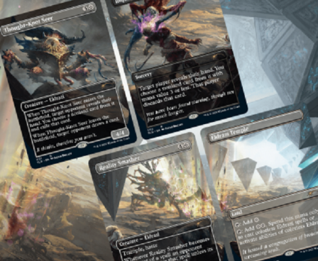 Aleksi Briclot has been making Magic art for nearly two decades, so we’re shining the spotlight on his amazing talent with a drop that’s especially cool: all the borderless cards combine to form a complete panoramic scene. Also, there might be something strange happening with the flavor text . . . perhaps a hidden message? Piece it all together by adding these to your deck or collection!