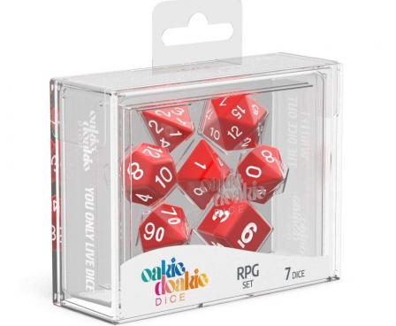 The Role-playing Game Sets consist of 7 different dice: D6, D4, 2x D10 (steps of 1 and steps of 10), D8, D20 and D12. They come packed in strong boxes with extendable shelves so you can easily take them with you and play wherever you want to.