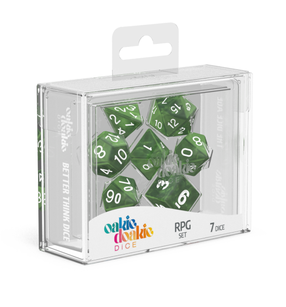 Oakie Doakie Dice RPG Set Marble Red 7 Dice Green