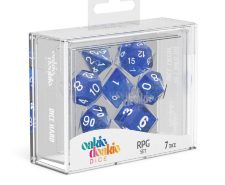 The Role-playing Game Sets consist of 7 different dice: D6, D4, 2x D10 (steps of 1 and steps of 10), D8, D20 and D12. They come packed in strong boxes with extendable shelves so you can easily take them with you and play wherever you want to.