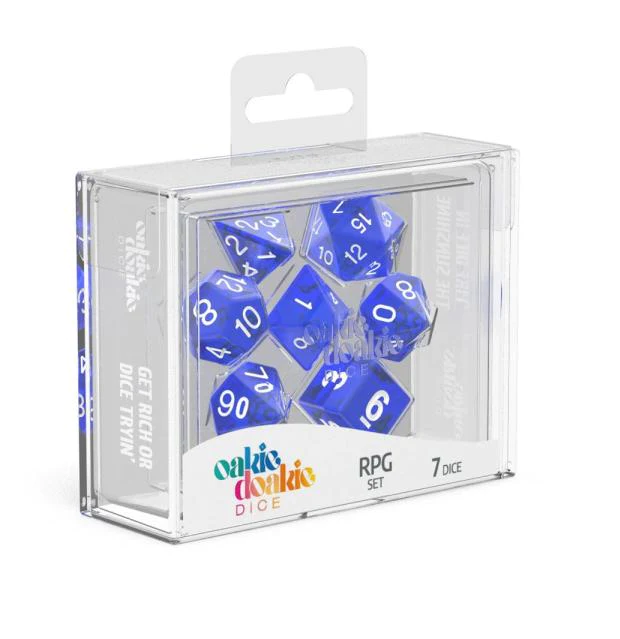 The Role-playing Game Sets consist of 7 different dice: D6, D4, 2x D10 (steps of 1 and steps of 10), D8, D20 and D12. They come packed in strong boxes with extendable shelves so you can easily take them with you and play wherever you want to.