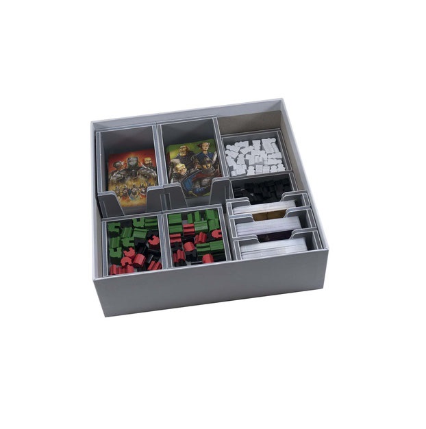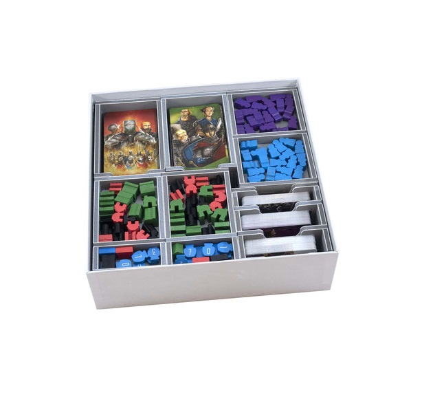 Insert compatible with Paladins of the West Kingdom®. The design provides both efficient storage and improved game play. Many of the trays can be utilised during the game, and they greatly aid set-up and clear-away times. The rules and boards act as a lid on top of the trays.