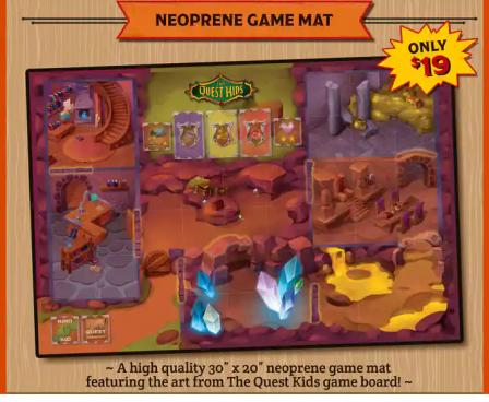 SHARED TO : 1 in stock 285000 Enter Quantity 12345678910 Add to WishlistWeight: 2000 gAgesMax: 100 Ages : Players : - Game Length : CONTENT DESCRIPTION This is Playmat For The Quest Kids Board Gamea High Quality 30" x 20" neoprene game matFeaturing the art from The Quest Kids Game board Log in or register to post comments Comments